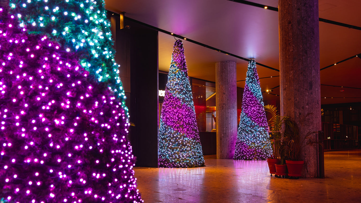 Twinkly transforms Christmas tree lighting into a truly creative and personalized experience with a screen-like surface that can be programmed or customized in real time via the app. Twinkly's professional LED Christmas tree installations illuminate any space, from private events to commercial spaces and public squares.