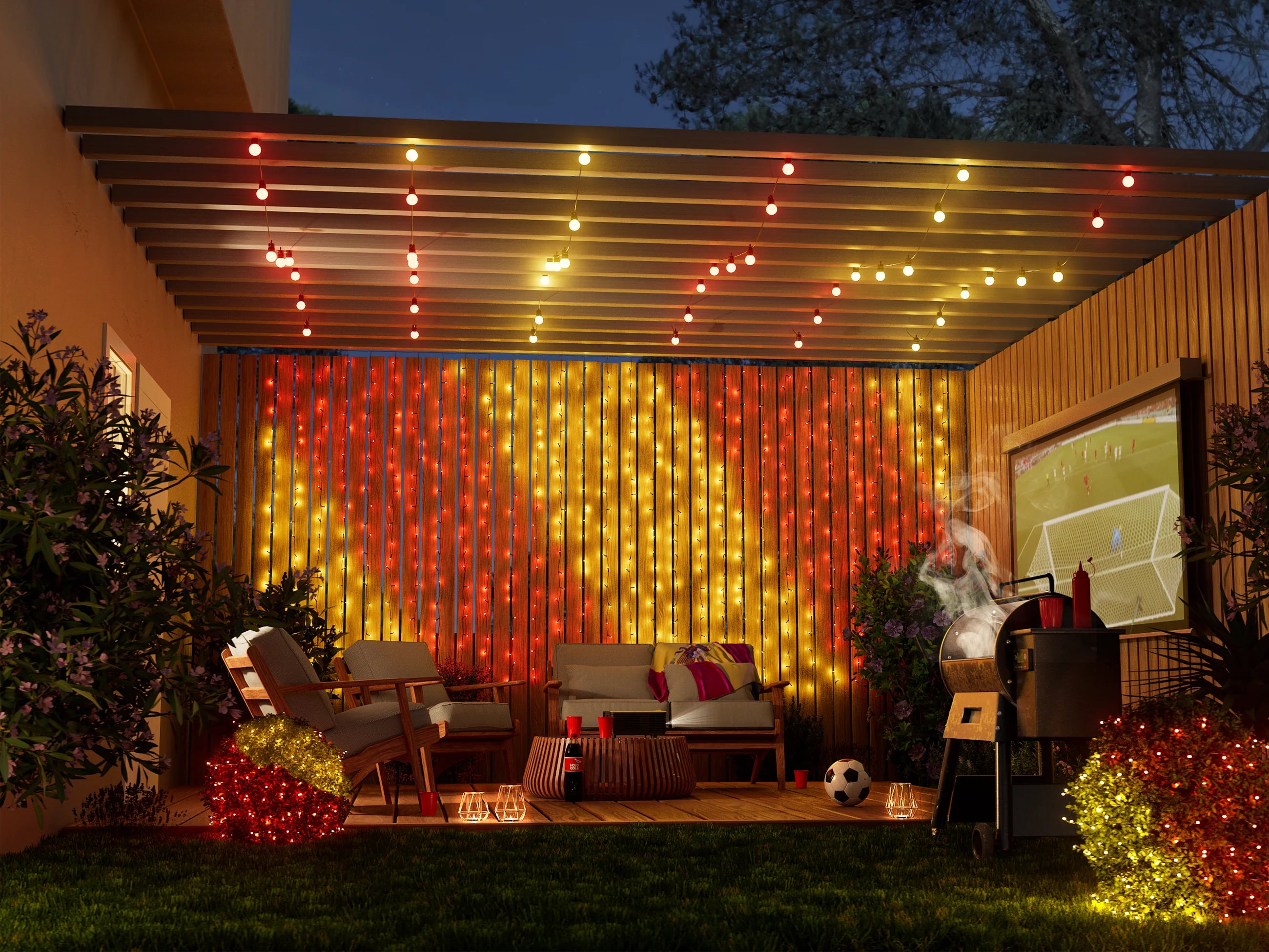 Place Twinkly outdoor lights anywhere, from trees and fences to decks, patios, or even the roof of your home. Mapping technology lets you control your lights regardless of their location.