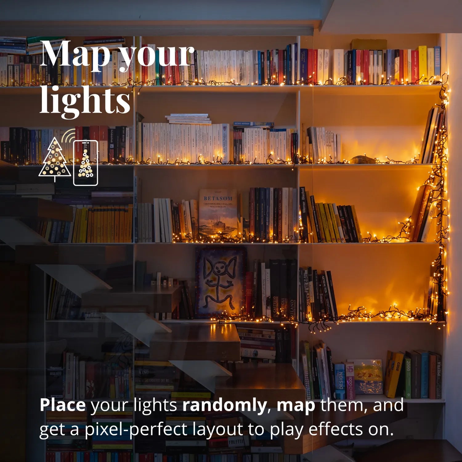 Cluster utilizes patented technology that uses your smartphone's camera and app to map the position of each LED. Create an endless number of personalized effects and create your own using a palette of over 16 million colors.