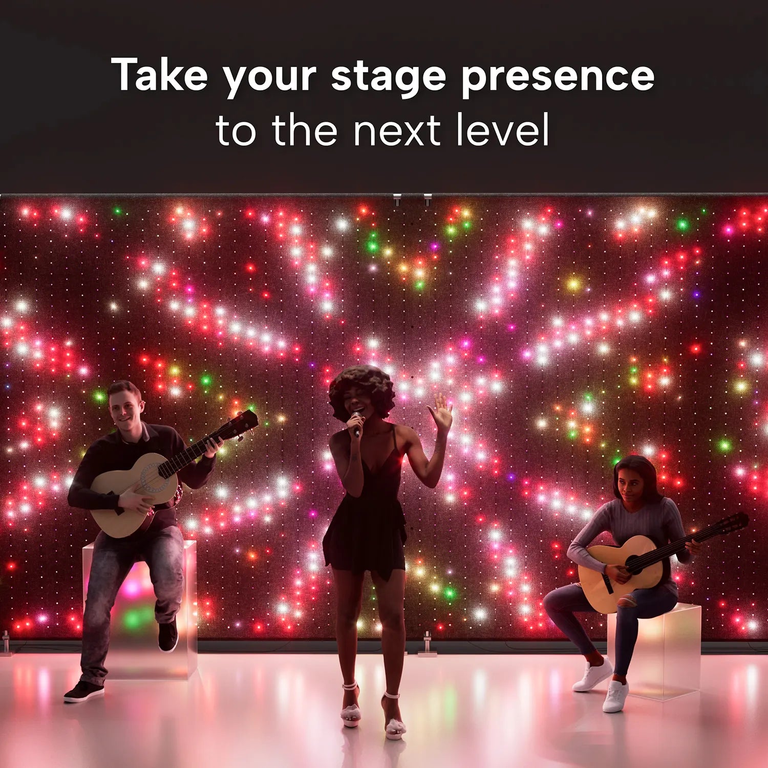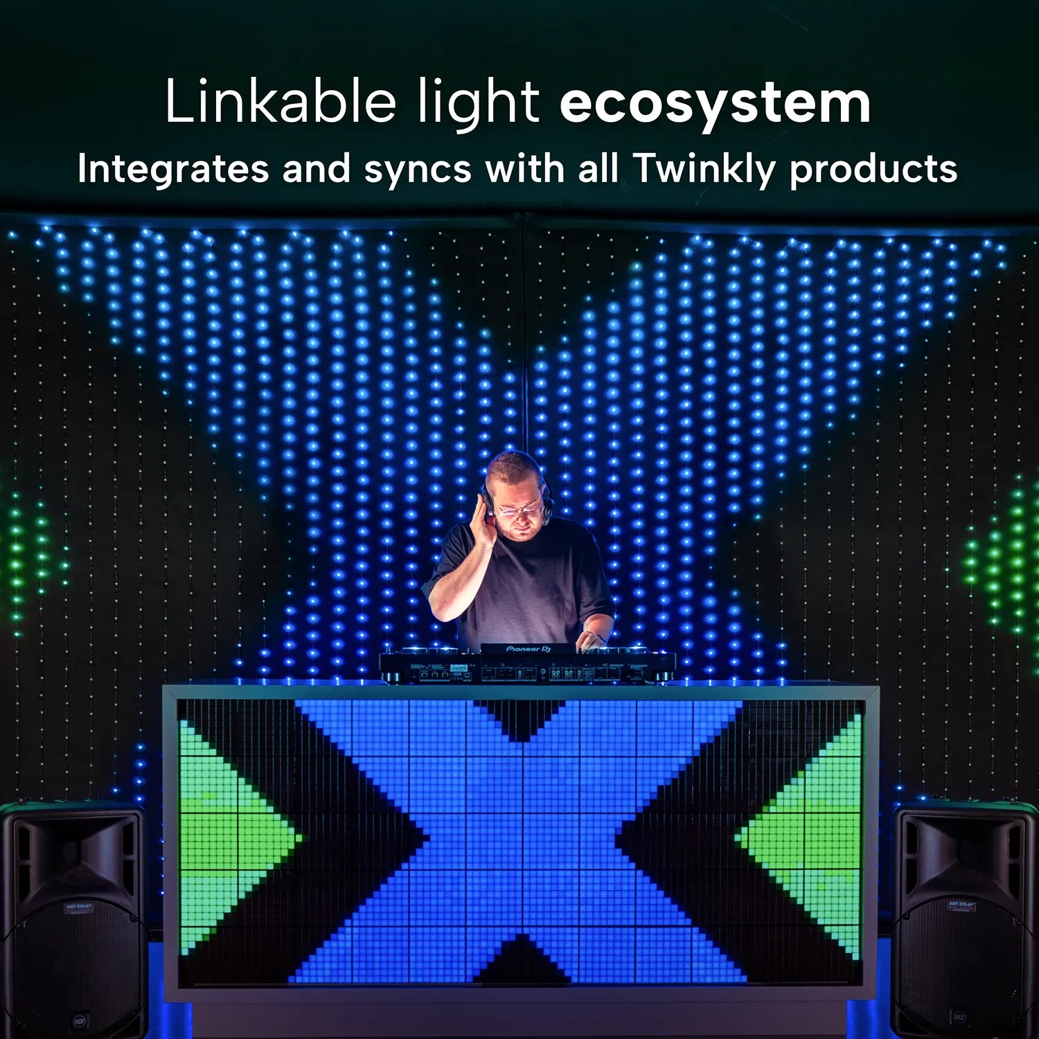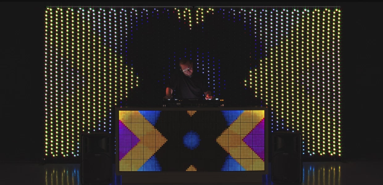 A professional look and feel are guaranteed by a high-quality black fabric background, a sturdy metal frame, and RGB LEDs that emit unparalleled brightness and lifespan. Diagonal spacing ensures smoother animations and effects. The lamps are IP44 certified, making them resistant to water and spills.